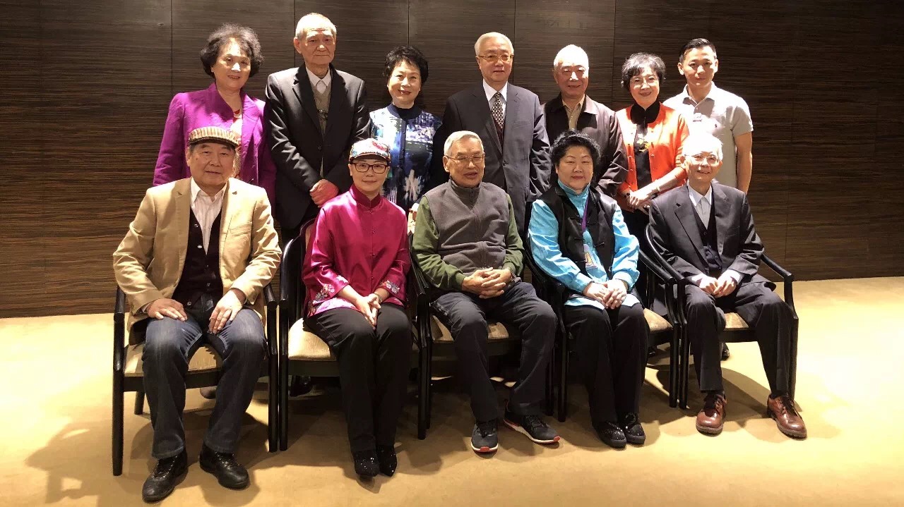 上海昆剧团赴台湾演出发布会现场嘉宾合影,蔡正仁馆员(后排中)、岳美缇馆员(后排左三)、梁谷音馆员(后排左一)、计镇华馆员(前排左一)、张静娴馆员(后排右二)