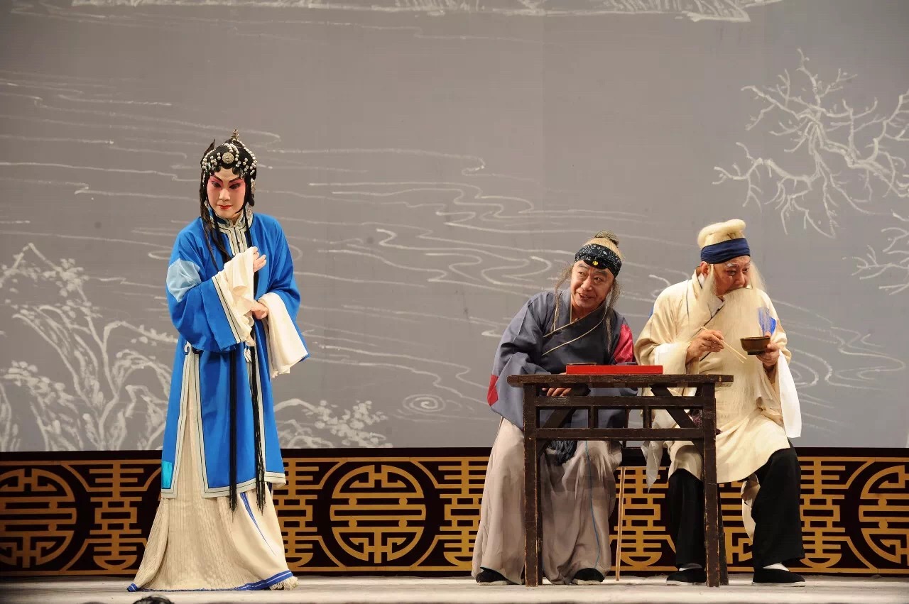 《吃糠遗嘱》中计镇华馆员(右一)饰蔡公、梁谷音馆员(左)饰赵五娘
