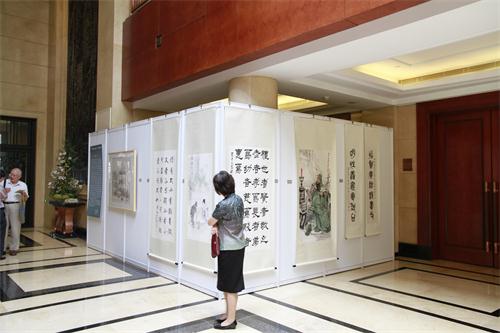 配合论坛主旨,此次论坛还推陈出新,在会场同时举办“中华礼仪之光”诗书画展览,发挥文史馆书画名家荟萃的优势,精心组织创作了一批书画作品,绘画作品对中国文化元典中出现的历史人物求贤若渴、尊贤尚德、敬老爱幼、求学问道等内容进行图解。参与创作的画家有贺友直、颜梅华、韩敏、汪观清、张培础、毛国伦、朱玉成等馆员及两位文史馆书画社的特聘研究员叶雄、奚文渊。书法创作则选取对传统礼仪有所阐发并对当今有启迪意义的内容书写。陈佩秋、高式熊、钱茂生、刘小晴、廖炯模、林仲兴、吴柏森、汤兆基、童衍方、刘一闻、王兆荣、吴孟庆等参与创作。顾振乐、田遨、姚昆田、徐圆圆等馆员还作诗或自书或请书法家代书。