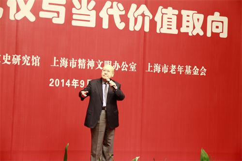 复旦大学终身教授、上海市文史研究馆馆员姜义华作题为《论“礼治”的当代意义》的主旨演讲,阐释了在当代构建合乎中华民族精神同时又极具时代精神的德治、礼治、法治体系的可行性。中共上海市嘉定区委常委、区委宣传部部长林峻以《礼乐文明与现代化新型城市——从“礼乐嘉定”说起》为题,介绍了嘉定区在创建全国文明城区的过程中,围绕社会主义核心价值体系建设,提出“教化之城,礼乐嘉定”的口号,以大力提倡推广礼乐文明作为现代化新型城市的抓手所做的有益探索和成功经验。